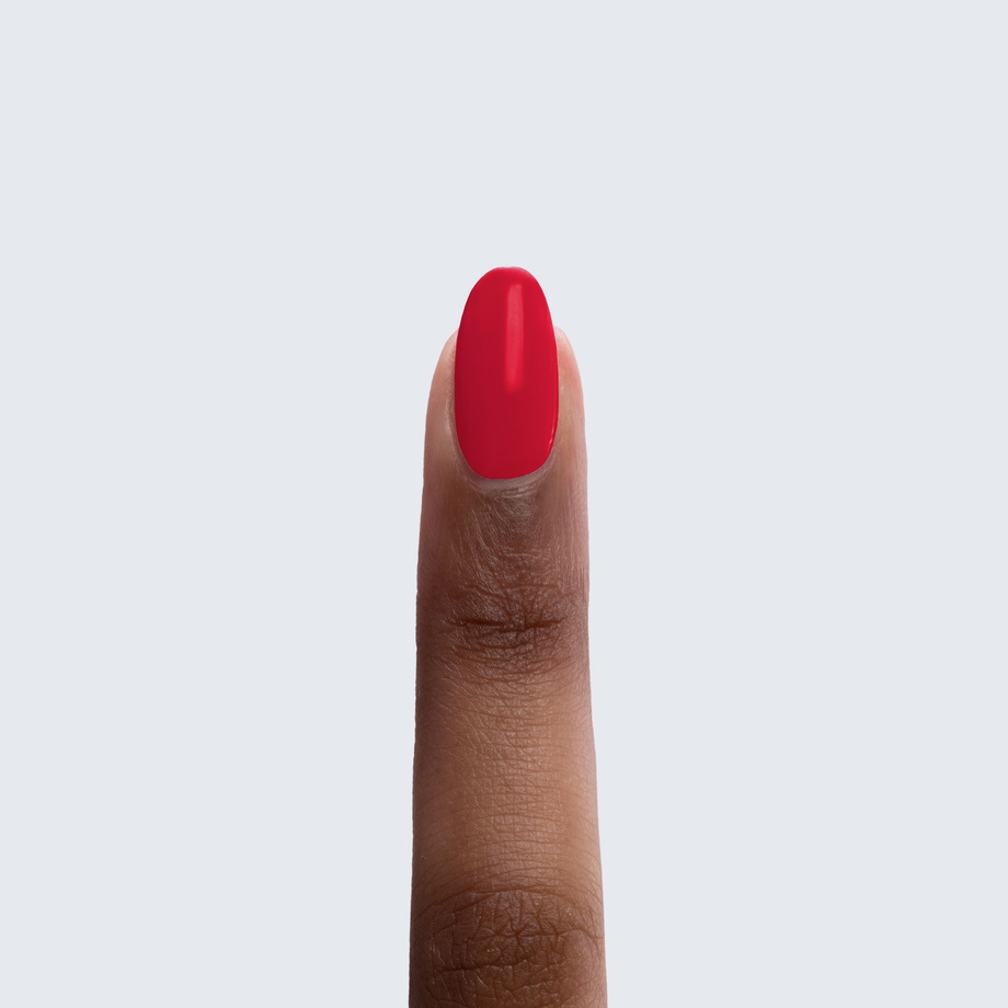 Here’s a poppy red polish with a certain je ne sais quoi.